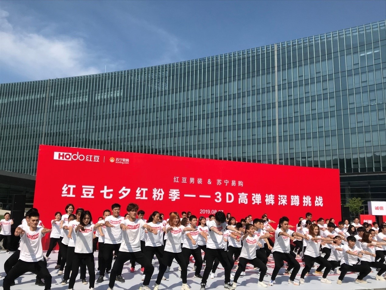 ? ? ? ? 內(nèi)場的發(fā)布會全面啟動線上銷售,而外場深蹲挑戰(zhàn)是一場對高彈褲的探索,將會顛覆你對褲子的認知,通過切身體驗產(chǎn)品的形式更直觀地展現(xiàn)了第三代紅豆3D高彈褲的高彈力、回復性與舒適度。深蹲挑戰(zhàn)還融合了七夕的主題,77對情侶在七夕這一天身穿紅豆3D高彈褲,默契搭檔挑戰(zhàn)深蹲,在音樂的變換中完成指定動作,深蹲、弓步、抬腿……他們挑戰(zhàn)自我、配合默契,突破傳統(tǒng)褲子對身體的束縛,在展現(xiàn)3D高彈褲產(chǎn)品優(yōu)點的同時,增強彼此間的互動,也為這場挑戰(zhàn)增添了甜蜜與浪漫。這場有趣的挑戰(zhàn)更像是一次情侶間默契度的考驗,也將會成為他們難忘的七夕體驗。紅豆的匠心產(chǎn)品與蘇寧平臺相結合,在七夕這個特殊的日子里,集結紅粉與77對情侶,用別具一格的深蹲挑戰(zhàn)形式演繹經(jīng)典產(chǎn)品的全新面貌。