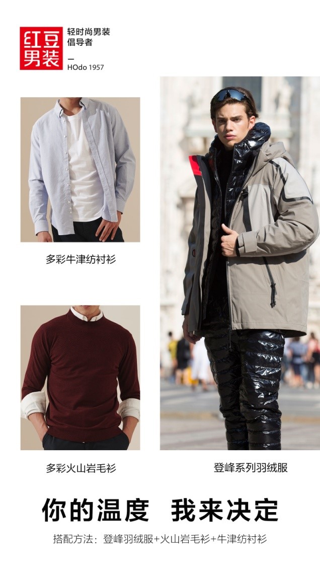 “ 旅行過新年”已經成為如今春節過年的熱門形式,比起在家過春節的千篇一律,很多人更愿意在旅行中享受別樣年味兒,大自然的無限風光掃去一年的疲憊與壓力,假期就是要好好享受生活。紅豆登峰鵝絨服精選精致鵝絨,加上暖絨發熱布袋,就算旅行途中再寒冷,也不用穿著臃腫,內搭多彩牛津紡襯衫和火山巖毛衫,明快色彩的組合打造出簡約自然的風格。旅行中的溫度與風度,紅豆男裝都能為你守護。