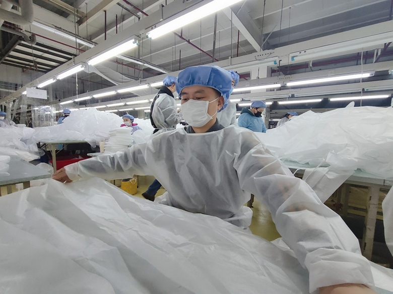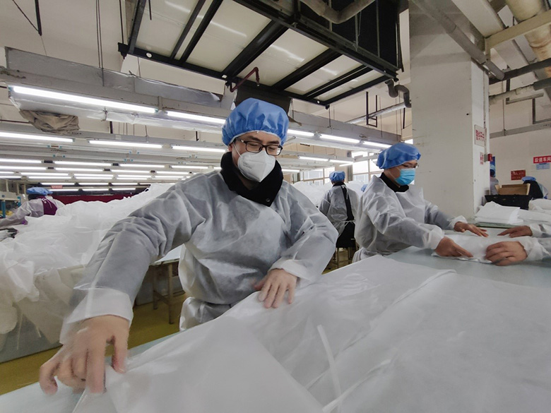 另外一邊,公司人力資源部逐個和本地員工聯(lián)系,告知公司接到生產(chǎn)一次性醫(yī)用隔離服的緊急任務(wù),動員他們趕快來上班,聽到消息后黨員干部們立即挺身而出,帶頭趕赴一線,員工們也紛紛響應(yīng)。