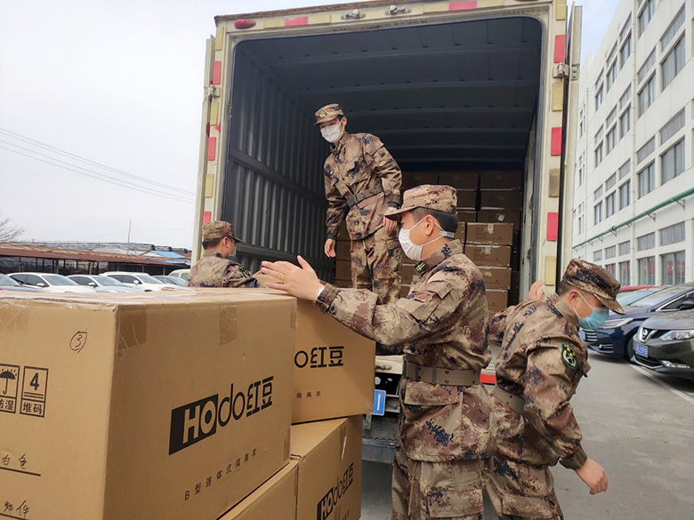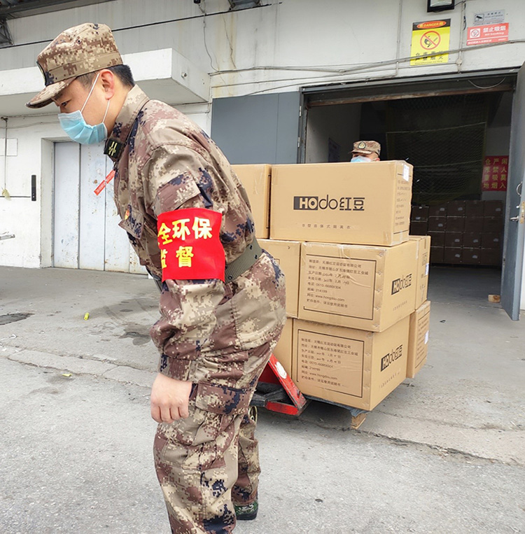 交期就是命令,現(xiàn)場就是戰(zhàn)場,多生產(chǎn)一件隔離衣,多保護一個生命。2月17日下午5點,4輛滿載4萬件一次性醫(yī)用隔離衣的集裝箱貨車,連夜火速馳援武漢。這背后是紅豆黨員干部充分發(fā)揮黨組織的戰(zhàn)斗堡壘和黨員的先鋒模范作用,始終戰(zhàn)“疫”在一線,最終以72小時的神速向前線武漢發(fā)貨首批4萬件一次性醫(yī)用隔離衣,再次刷新了紅豆人的戰(zhàn)“疫”速度。