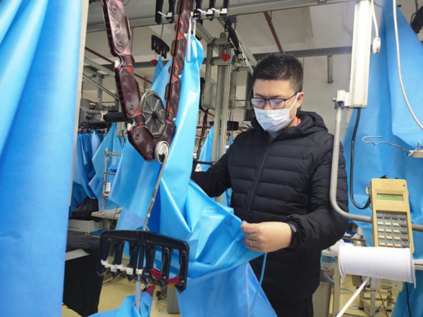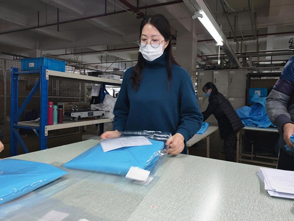 生產(chǎn)任務(wù)更艱巨,面料顏色要求比較特殊,而目前防護材料又是全球緊缺物資,因此,解決3月1日上午出運的3.8萬件面料問題,最為關(guān)鍵。老黨員顧彩紅再次自動請纓,挑下采購面料的重擔。
