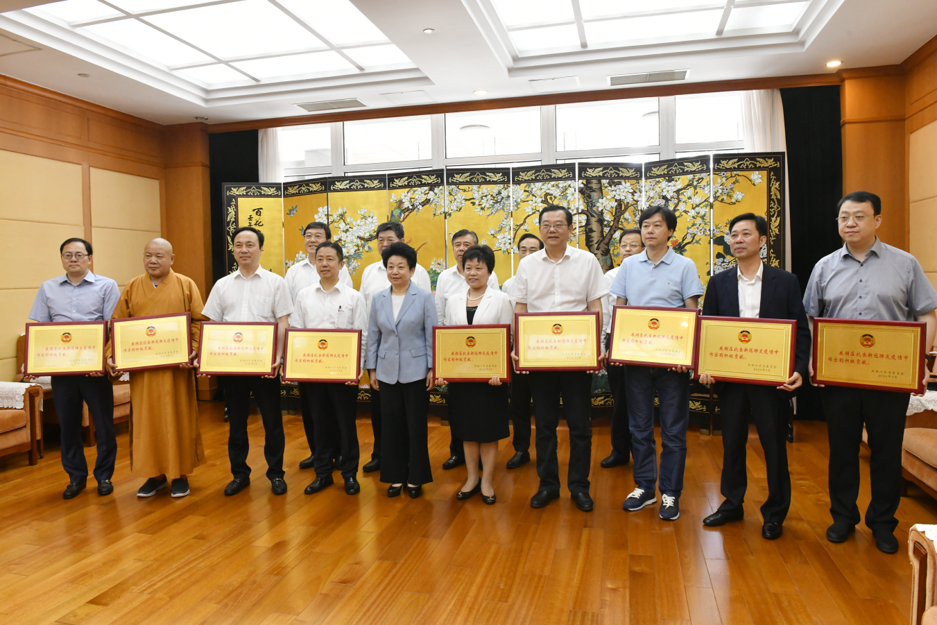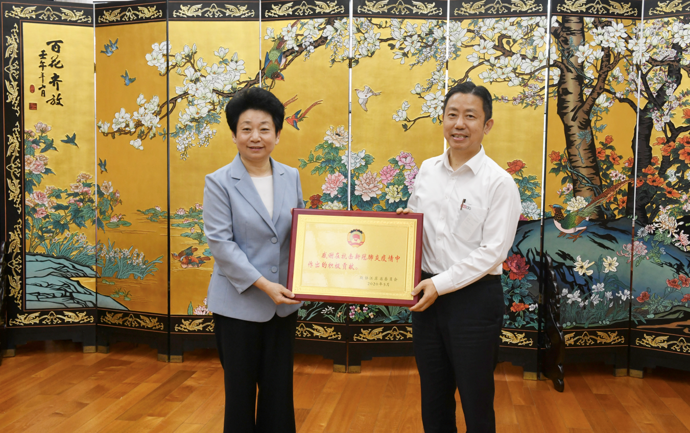 6月17日,紅豆集團及集團董事局主席兼CEO、省政協(xié)常委周海江因在抗擊新冠肺炎疫情中堅持黨建引領(lǐng)、積極參與戰(zhàn)“疫”、踐行使命擔當、作出突出貢獻,受到政協(xié)江蘇省委員會表彰。省政協(xié)主席黃莉新為受表彰集體和個人頒發(fā)榮譽牌。