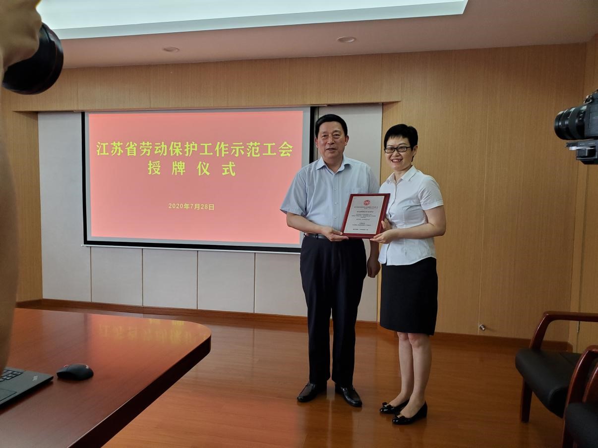 7月28日,在無錫錫山區總工會勞動保護工作匯報會上,無錫市委常委、市總工會主席陳德榮代表江蘇省總工會為紅豆集團工會授牌“2019年度江蘇省企事業工會勞動保護工作示范工會”,紅豆集團黨委副書記、工會主席王竹倩出席會議。陳德榮對紅豆集團過去一年的安全生產工作給予高度評價,寄語紅豆再接再厲,進一步加強工會勞動保護工作,發揮典型引領作用。