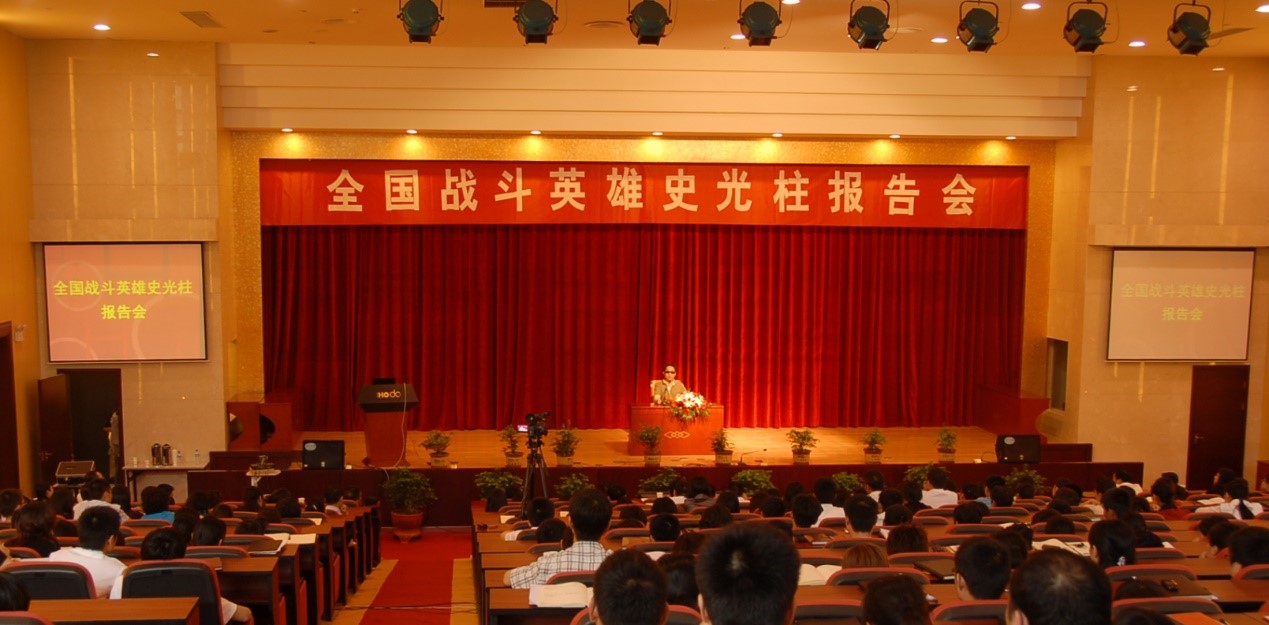全國戰斗英雄史光柱在紅豆集團作報告會
