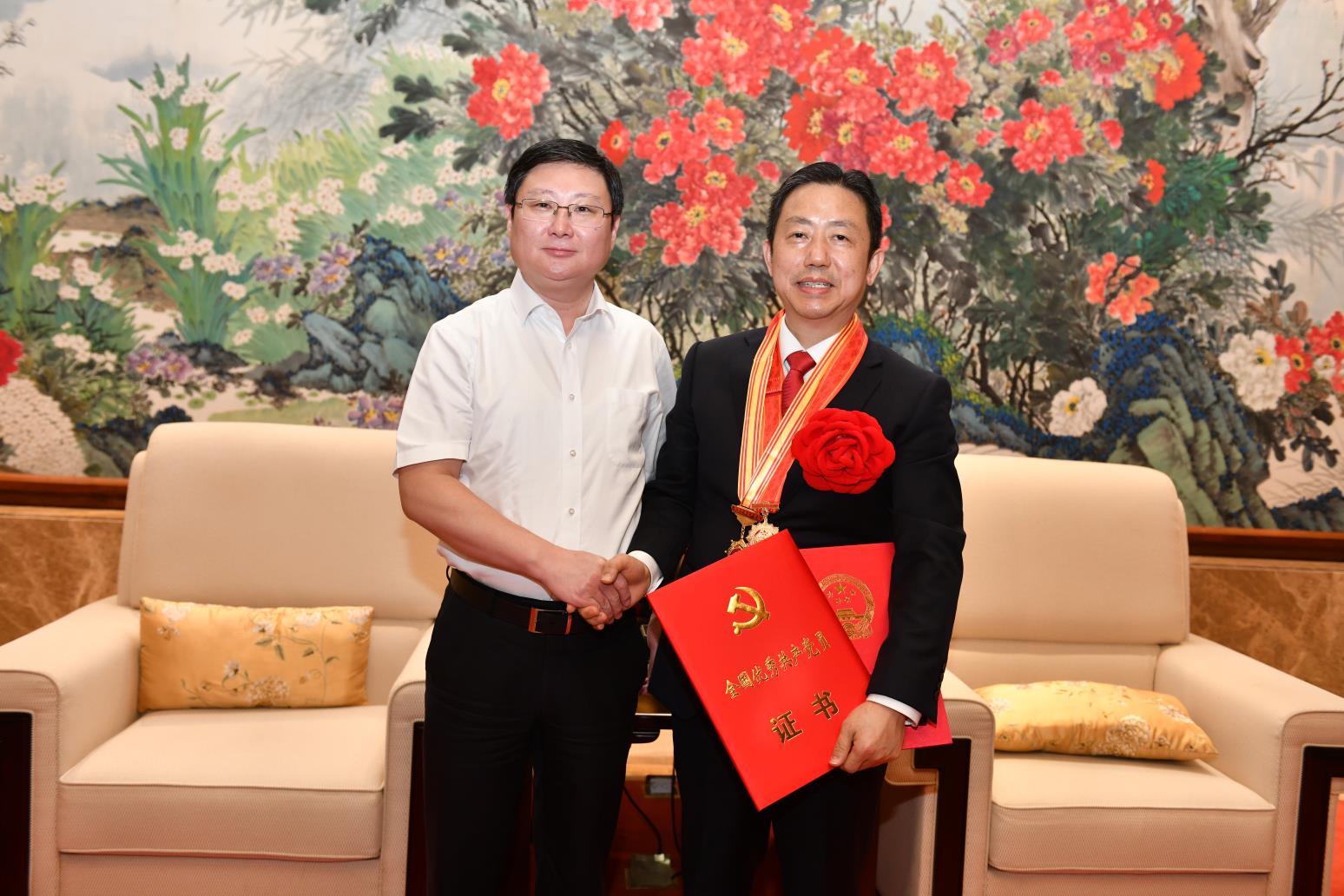 一見(jiàn)面,周文棟就高興地說(shuō),我代表錫山區(qū)四套班子,還有70萬(wàn)錫山的老百姓歡迎周海江凱旋歸來(lái)。周海江獲得的兩項(xiàng)殊榮,不僅是個(gè)人的榮譽(yù),紅豆的榮譽(yù),還是我們整個(gè)錫山,還有無(wú)錫人民的巨大榮譽(yù),是我們錫山區(qū)、無(wú)錫市的驕傲。可以說(shuō),周海江和紅豆集團(tuán)獲得了黨建工作榮譽(yù)(全國(guó)先進(jìn)基層黨組織、全國(guó)優(yōu)秀黨務(wù)工作者、全國(guó)優(yōu)秀共產(chǎn)黨員)的大滿(mǎn)貫。周海江十分感謝市區(qū)黨政班子的關(guān)心和支持。他說(shuō),此次全國(guó)抗擊新冠肺炎疫情表彰大會(huì)的儀式感很強(qiáng),正如我們?cè)谝曨l中所看到的鐘南山院士由國(guó)賓護(hù)衛(wèi)隊(duì)護(hù)衛(wèi)前往人民大會(huì)堂這是歷史第一次,勛章是由禮儀兵護(hù)送上去。我覺(jué)得黨中央是想通過(guò)此次活動(dòng)把我們民族精神賦予新的內(nèi)涵,即增加了抗疫精神,把抗疫的強(qiáng)大精神力量轉(zhuǎn)化為我們戰(zhàn)勝中美貿(mào)易戰(zhàn)等各種挑戰(zhàn)的力量源泉。周海江還表示,要化這種受激勵(lì)的奮進(jìn)力量為推動(dòng)紅豆轉(zhuǎn)型發(fā)展的動(dòng)力。要努力把紅豆的工作做好,把企業(yè)經(jīng)營(yíng)好,加快進(jìn)化升級(jí),不負(fù)黨委、政府和人民的期望。周文棟表示,感同身受周海江參會(huì)氛圍的感染和偉大抗疫精神的力量傳遞,希望這種奮進(jìn)的力量也能成為我們錫山“做全市重要增長(zhǎng)極,當(dāng)改革創(chuàng)新先行軍”的動(dòng)力源!
