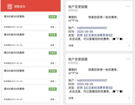紅豆家紡通過消費季的前端讓利,鏈接更多用戶的后端消費,促活并綁定會員,繼續為用戶創造后端價值,在后端需求中通過消費券包與用戶建立多次鏈接,增強會員黏性,持續輸出品牌健康價值。
