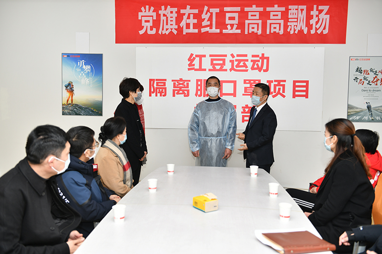 “生產隔離服,時間緊,任務重,關系到疫情防控效力和一線醫(yī)護人員以及人民群眾生命安全,容不得絲毫猶豫和懈怠,黨員干部首先成立突擊隊,要率先發(fā)揮黨員的先鋒模范作用,擔起這個重任!”紅豆運動裝公司黨支部書記、總經理高品亞作為隔離服生產線指揮領導小組組長,提出隔離服生產要求。