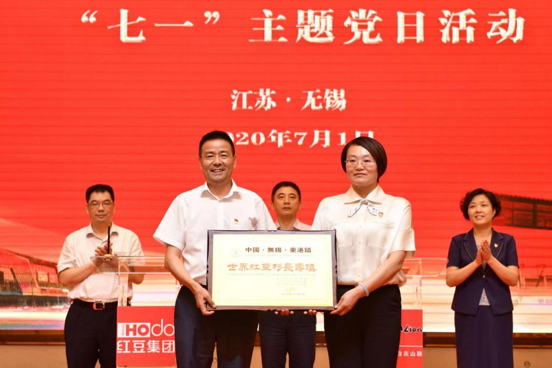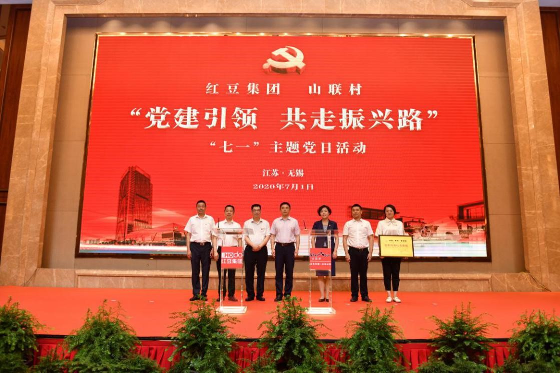 村企聯(lián)姻一家親,攜手共進(jìn)助振興。 7月1日下午,紅豆集團、山聯(lián)村“黨建引領(lǐng)共走振興路”“七一”主題黨日活動在紅豆杉莊舉行。活動上,紅豆集團與山聯(lián)村深化結(jié)對共建正式簽約;為推動山聯(lián)村休閑、度假、康養(yǎng)產(chǎn)業(yè)發(fā)展,帶動百姓致富,紅豆集團還將“世界紅豆杉長壽鎮(zhèn)”品牌使用權(quán)授予山聯(lián)村。