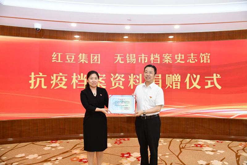 無錫市檔案史志館系統(tǒng)、深度、精準(zhǔn)地挖掘開發(fā)檔案史志資源,不斷提升新形勢下檔案史志工作水平,服務(wù)發(fā)展大局、服務(wù)社會(huì)民生,為無錫經(jīng)濟(jì)的高質(zhì)量發(fā)展作出了積極貢獻(xiàn)。紅豆集團(tuán)作為全國先進(jìn)基層黨組織,在疫情防控期間,凝聚強(qiáng)大力量,積極支持一線抗疫,勇?lián)?zé)任,為抗疫前線提供支持與保障。此次,雙方舉行檔案史料相互捐贈(zèng),既是對這場戰(zhàn)疫的永恒銘記,也是對這場人民抗疫戰(zhàn)爭的最好致敬。