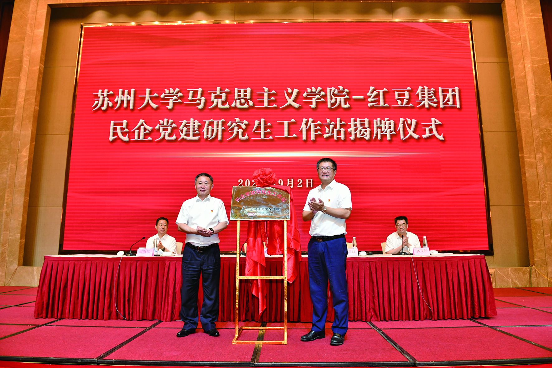 紅豆集團黨委是全國先進基層黨組織,是全國民企黨建的標桿,蘇州大學馬克思主義學院是省高校示范馬克思主義學院,田芝健教授作為學院院長、博士生導師,多次參與主持國家重大重點課題,理論功底深厚、學術視野開闊。此次,雙方協商決定成立民企黨建研究生工作站,為深化民企黨建理論研究和實踐創新搭建工作平臺、探索有效路徑。